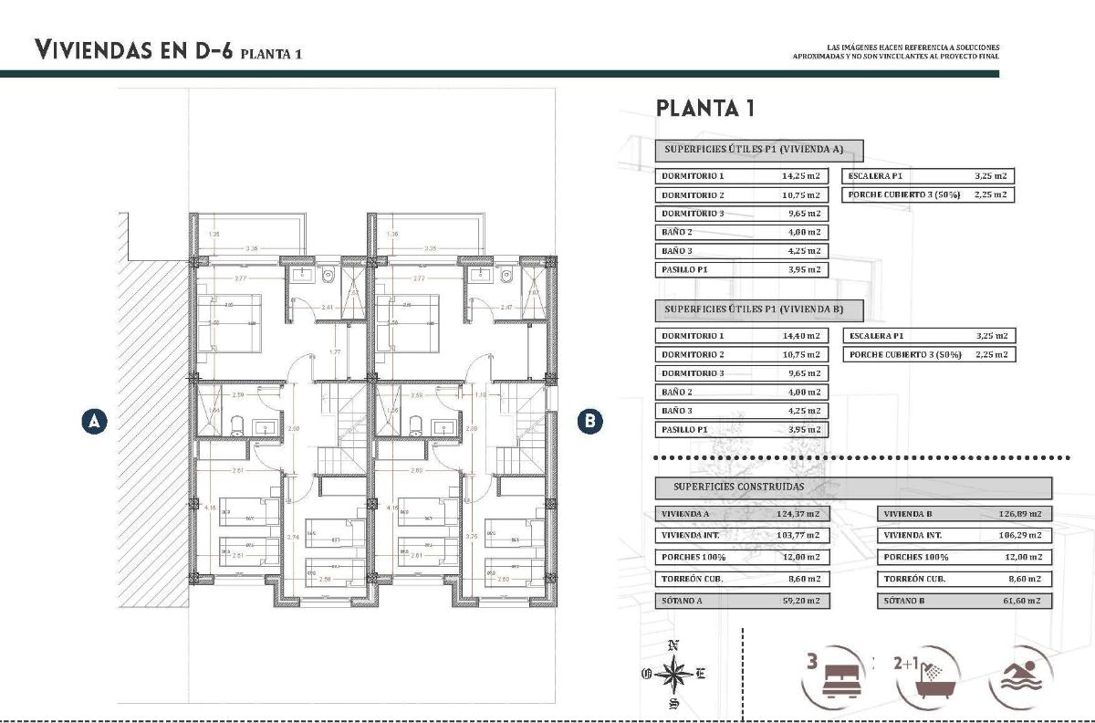 New Build Townhouses with Solarium and Basement Garage in Bigastro Vega Baja Exclusive Development of Only Two Modern Homes This boutique new build project consists of just two townhouses in the peaceful town of Bigastro, located in the Vega Baja area of the Costa Blanca South. Designed with a practical layout across several levels, these homes combine space, comfort and energy efficiency in a well connected residential setting. Bigastro is known for its quiet atmosphere, traditional Spanish character and excellent access to nearby towns, beaches and services. It offers a relaxed lifestyle while being close to everything needed for daily living, making it ideal for both permanent residence and holiday use. Spacious Layout Across Four Levels Each property is distributed over basement, ground floor, first floor and rooftop solarium, providing generous interior and exterior living areas. The 59 m2 basement is designed as a private garage with motorized access door, offering secure parking and additional storage space. On the ground floor, you will find a bright open plan living room with kitchen, a guest toilet and two terraces, one at the front and one at the rear, allowing natural light and ventilation throughout the day. The first floor features 3 bedrooms and 2 bathrooms, one of them ensuite, plus an additional terrace. On the top level, a private rooftop solarium of approximately 40 m2 provides the perfect space to relax, sunbathe or create an outdoor chill out area. Quality Features and Energy Efficient Systems These homes are built with modern materials and thoughtful details to ensure comfort and efficiency, including: Reinforced security entrance door Aerothermal system for hot water Photovoltaic solar panel Electric shutters in living room and bedrooms Pre installation of ducted air conditioning Motorized garage door Residents also have access to the communal swimming pool within the urbanization, adding extra value for leisure and relaxation. Well Connected Location Close to Beaches and Services Bigastro town center 0.5 km Orihuela city 5 km Guardamar del Segura beaches 15 km Zenia Boulevard Shopping Center 20 km Vega Baja Hospital 10 km Alicante International Airport 48 km Several golf courses within 15 km The nearby AP 7 motorway provides fast connections to Alicante, Murcia and the surrounding coastal towns. An Excellent Opportunity in a Growing Residential Area With local shops, schools, sports facilities, parks and restaurants, Bigastro is becoming increasingly popular among both national and international buyers seeking quality of life and good connections. Contact us today to receive more information or to arrange a visit to these exclusive new build townhouses in Bigastro.