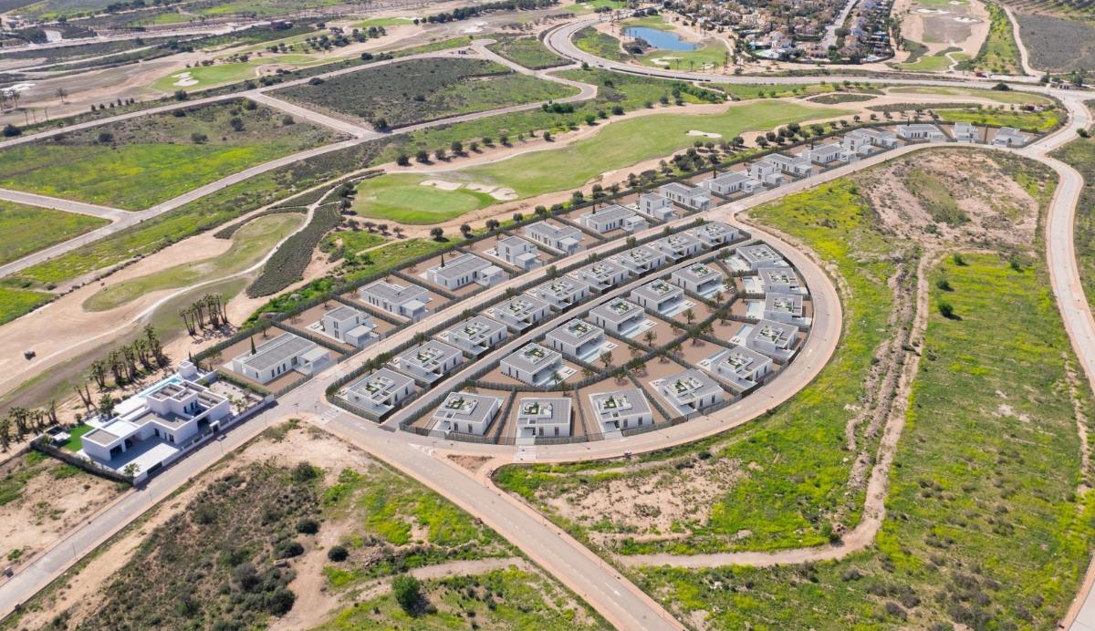 Exclusive villas with private pools at Hacienda del Álamo Golf Resort, Costa Cálida Modern villas with private pools in one of Spain’s finest golf resorts Discover a unique opportunity to purchase a newly built villa at an exceptional price in the Hacienda del Álamo Golf Resort, located between the historic cities of Cartagena and Murcia, in the heart of the Costa Cálida. These contemporary villas are designed to offer comfort, privacy and elegance, and are located in an exceptional setting dedicated to golf and leisure. Each property offers a spacious layout with 3 bedrooms and 2 bathrooms on one floor. Private rooftop solarium. With plots starting from 396 square metres and a built area of 111 square metres, these homes offer ample space for indoor and outdoor living. High quality features and finishes These villas are equipped with all modern amenities to ensure maximum comfort and style, including: Garden with drip irrigation system Fully equipped kitchen with fitted wardrobes and appliances included Pre-installation for ducted air conditioning Bathrooms with furniture, mirrors and shower screens Aluminium windows with thermal break and double glazing Access to a large communal swimming pool with natural grass and children’s play area Private 3×6 metre swimming pool with shower Luxury living at Hacienda del Álamo Golf Resort Hacienda del Álamo is renowned as one of Spain’s finest golf resorts, offering residents a relaxed, sporty and comfortable lifestyle. 18-hole golf course and academy Sports facilities including tennis, paddle tennis, gym and fitness classes Main clubhouse with panoramic views, a Mediterranean restaurant and sunny terraces 4-star hotel and spa for relaxation and well-being Spaces for the whole family, with children’s play areas, swimming pools and bike lanes. Traditional Spanish village with shops, cafés and new restaurants opening soon. Strategic location with excellent connections Corvera Airport (Murcia): 18 km (approx. 15 minutes) Cartagena: 36 km Murcia city centre: 40 km Mar Menor beaches: 28 km Shopping centres (Dos Mares, Espacio Mediterráneo): less than 30 km Your dream home next to the golf course awaits you Whether you are looking for a permanent residence, a holiday retreat or a smart investment on the Costa Cálida, these golf course villas in Hacienda del Álamo are the perfect choice. Contact us today for more information or to arrange a personalised viewing.